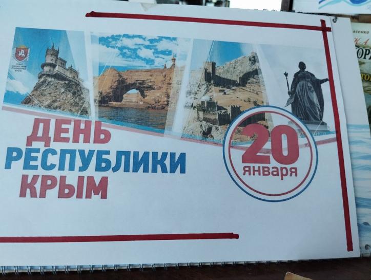 Ежегодно 20 января отмечается День Республики Крым. К этой замечательной дате в библиотеке школы развернута книжная выставка«Волшебный край, очей отрада», где читатели познакомятся с историей своей малой Родины, узнают о происхождении ее названия, её природных богатств. На литературном часе поговорят о государственных символах, о референдуме, который решил судьбу Крыма.