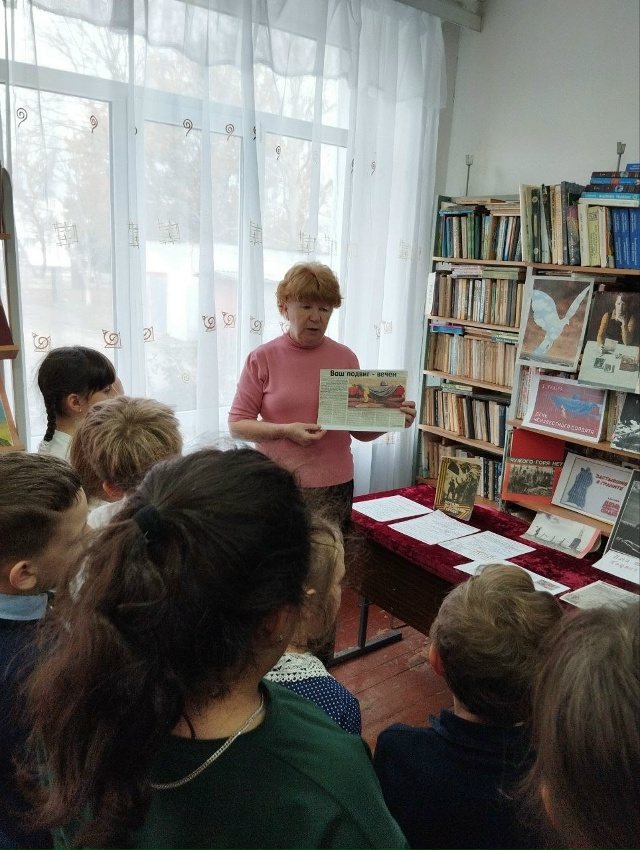 В рамках проекта «Историческая память» педагог-библиотекарь Архипова С.А. провела Урок мужества для учащихся, приуроченный к Дню неизвестного солдата и Дню Героев Отечества. На выставках «Неизвестным вернулся с войны» и «Подвиги героев бессмертны» состоялся разговор о патриотизме, защитниках Родины, доблести и подвигах, совершенных во имя Отечества.