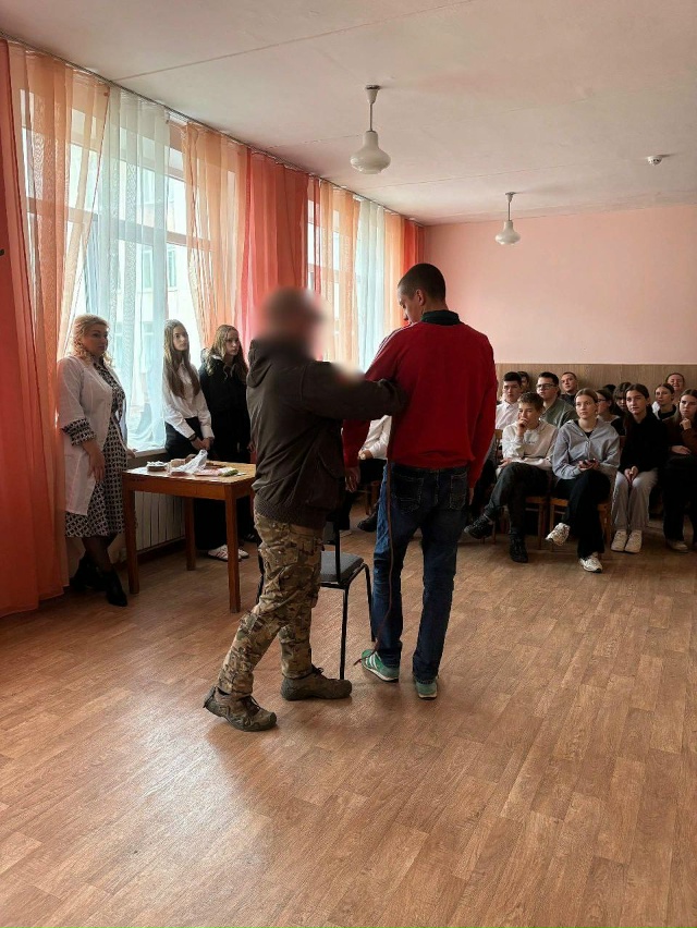 В рамках акции "Есть такая профессия Родину защищать" учащиеся старшей школы встретились с участником СВО, выпускником нашей школы. Он на личном примере рассказал, что значит защищать Родину — о своем опыте, ответственности и мужестве.