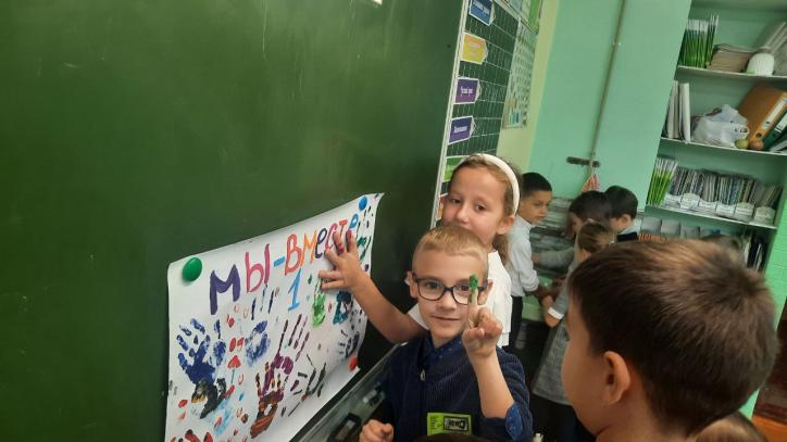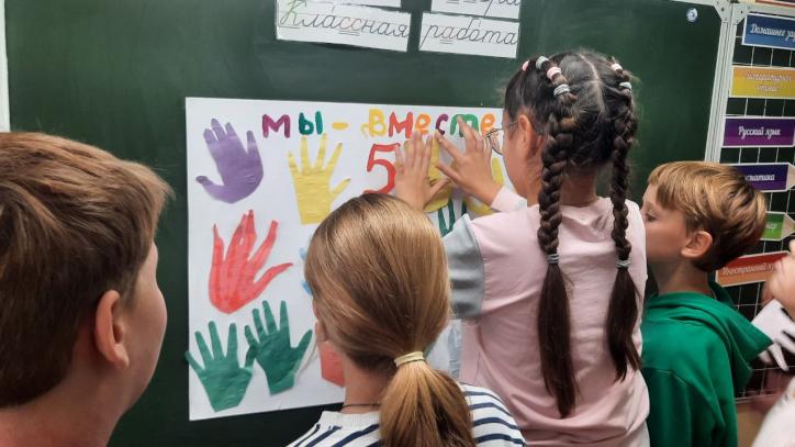 В 5 классе было проведено интерактивное занятие, на котором ребята окунулись в мир творчества, показав друзьям как выглядит их внутренний мир, место безопасности и силы. Затем учащиеся создали общий коллаж с ладонями пожеланий своему классу.