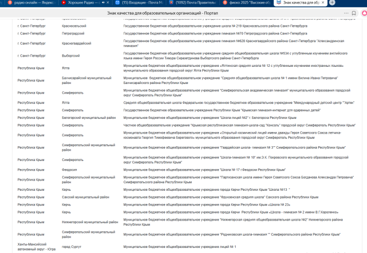 Название школы включено в публичный список награждённых на сайте ФГБУ «ФИОКО».